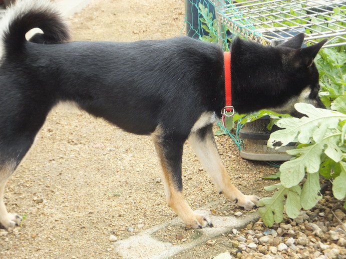 スイカが気になる黒柴ルイ
