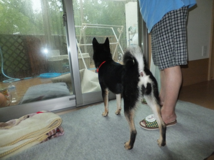 ルイもビクビクしながら、物音がするたびに外を覗き込んでます。