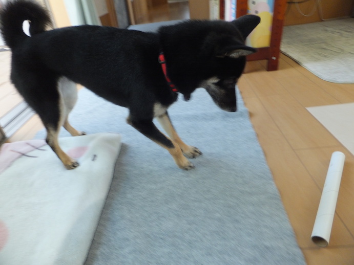 で、ラップを使い切ったのでラップの芯をおもちゃにして遊ぼうと思ったんですが・・。