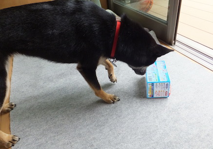 いつものように「おもちゃ」という名の「ゴミ」で遊んでいるルイちゃん