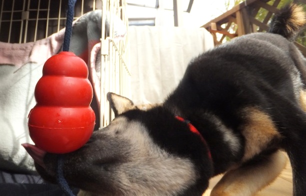 ツ・ツライ・・・ これはちょっと厳し過ぎたか・・・。 とっても辛そうです><。 ケージにコングをぶら下げて、振り子のようにして遊んでくれたらいいなぁと思ったのですが コングの穴に仕込んだおやつ(もう既に食べ終わってますが・・)に必死です。 舌が届いてない・・w いい加減あきらめなさい!
