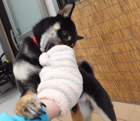 ハンドウォーマーの中に鼻を突っ込んで、クンクンクンクン。