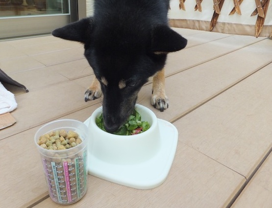 夕食は野菜サラダ? ルイの夕食だよー レタスとトマトとキュウリ 早く食べたくてウズウズしてますw 「ヨシ!いいよー」 野菜ばかりの食事でも嬉しそうにパクつくルイ。 カップに入ってるのが本来のルイのご飯。 素知らぬ顔して野菜に夢中です。 ご飯も入れてあげるから、しっかり食べてね^^ あれだけの野菜+ドックフードをペロリと完食です! 今年は夏バテせずに頑張れそうだね^^