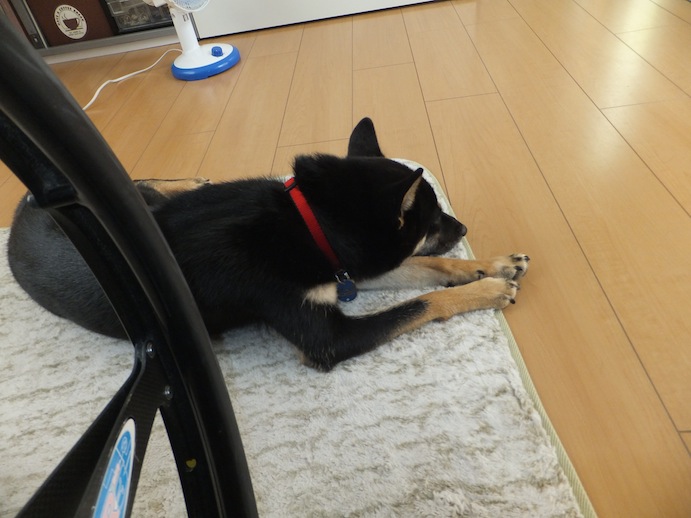 う、動けない・・・・orz ルイー、そんなところで寝てたら、私、動けないよー! 机とルイに挟まれて、身動きが取れなくなってしまいました><。 「どいてー」って声をかけても知らんぷり^^; 暑くて動くのイヤなのは分かるけど・・トイレに行きたいのー! 仕方がないので、ジリジリと下がってルイを押し出しました。 すっごい迷惑そうな顔で見られたんだけど・・私が悪いの??