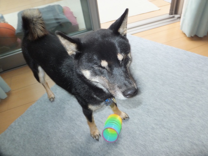 お母ちゃんを横目に一人で遊ぶ黒柴ルイ