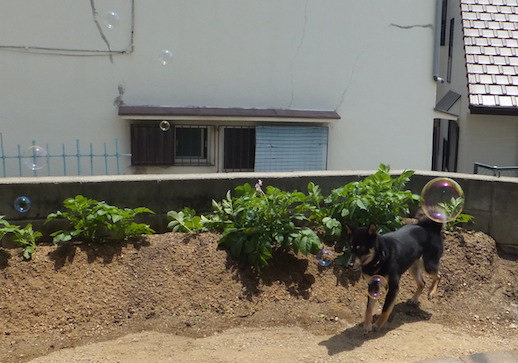 シャボン玉と全然違うところでお口が開いてますけど・・。
