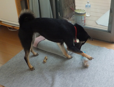 今日はずっと一緒♪ ここのところお留守番が続いたので、ルイもちょっと寂しそうです。 今日はどこにも出かけないので、一日中ルイと一緒です♪ 何して遊ぶ?? タワシ? そのあとは、ボール? 普段と同じペースの生活で、同じような遊びが一番いいみたいですね^^ おやつもいつもと一緒♪ ペットボトルにおやつを入れて、おもちゃで蓋をします。 転がしたり、投げ飛ばしたりして、蓋になってるおもちゃを外したら あとはペットボトルを転がして中のおやつを「いただきま〜す!」 明日もまたお留守番だけど・・よろしくね!