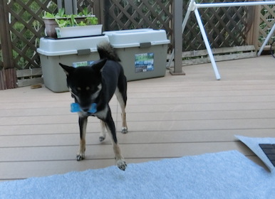 あそぼ♪ ルイがおもちゃを持ってきて「遊んで♪」って催促してます。 ルイのこの催促にはめっぽう弱くて・・ ついつい誘いに乗っちゃいます。。 「はい、いくよー」 ナイスキャッチ! 最初のうちはいいのですが、同じことの繰り返しに投げてる方は段々疲れてきちゃいます。 だけど、切り上げるタイミングが難しい・・。 だってルイが目をキラキラさせて待ってるんだもん!