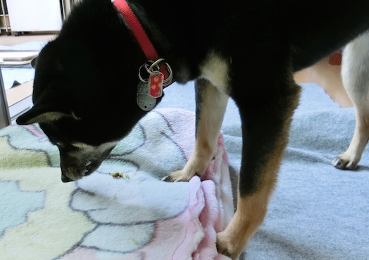 レタスの芯の固い部分を奥歯でボリボリ食べる黒柴ルイ